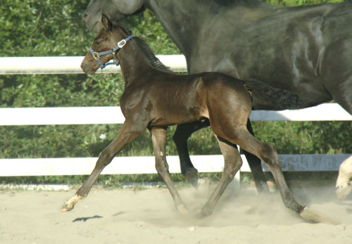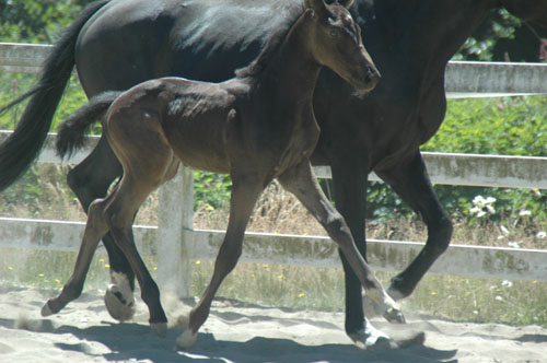 Aero was the first of our homebred Yeager GF foals. He turned out to be everything we were hoping for - athletic, beautiful and sweet. He has definitely inherited his parent's excellent movement, playfulness and presence. It has been a joy to see him grow up and develop into an exceptional dressage horse and valued family member for his owners.