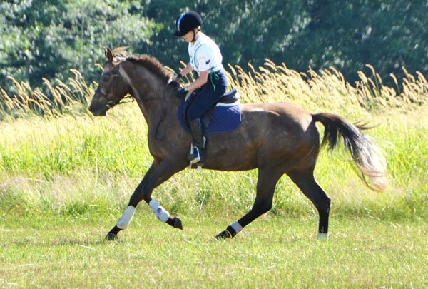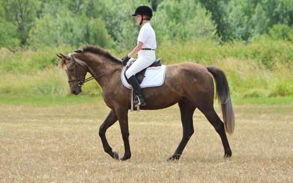Franka (now known as Willow) is a well balanced, elastic mover. She is a real sweetheart that always tries to please. This BTF bred filly has proven her talent as a sporthorse in both jumping or dressage, competing successfully with her owner as an eventer in the Pacific NW. She is laid back, simple and fun to ride. Her DNA confirms that she is a palomino that is turning grey.
