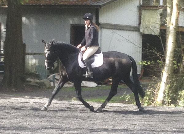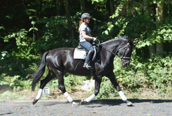 Wicca is a 17hh black RPSI/Westfalen mare. Her sire is the imported Oldenburg, Weltstern, an extremely well bred stallion who was licensed and approved in Germany prior to his import and Oldenburg/ISR approval in the U.S. Wicca is a sweet mare with great substance and exceptional movement. She has had 4 foals for us and is also one of our lesson horses. She is expecting a 2020 foal that is for sale.