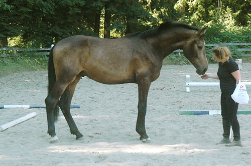 Yukon is a full sibling to Aero, Odin and Brann. Like his brothers, he is a fantastic mover with lots of suspension and a well engaged, uphill canter. He has a large, ground-covering stride, and reminds us a lot of his sire. Fancy, playful and sweet, this guy is VERY tall - 18.3hh! He has shown in dressage, vaulting and hunters.